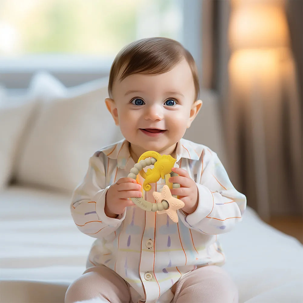 Give your family the soothing relief they need with our Silicone family Teether Shapes. Designed with delicate gums in mind, these BPA-free, soft silicone teethers come in fun marine animal shapes that will engage and comfort your little one during teething.